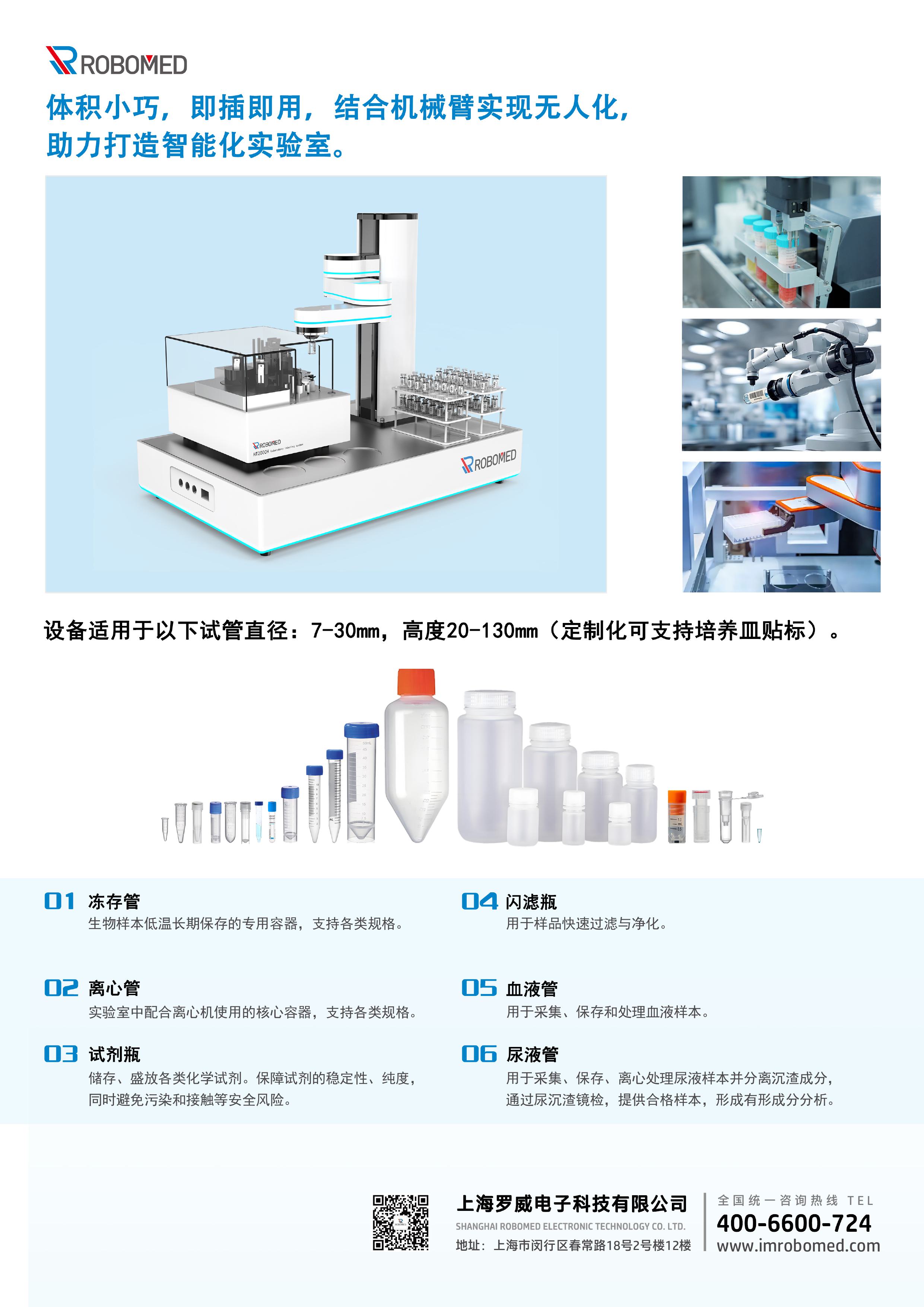 实验室试管自动贴标机专为化学、制药等实验室设计,可自动打印并粘贴试管标签,涵盖样品编号、检测项目、日期等信息,有效替代人工操作,显著提升试管标识效率和准确性,避免人为误差
